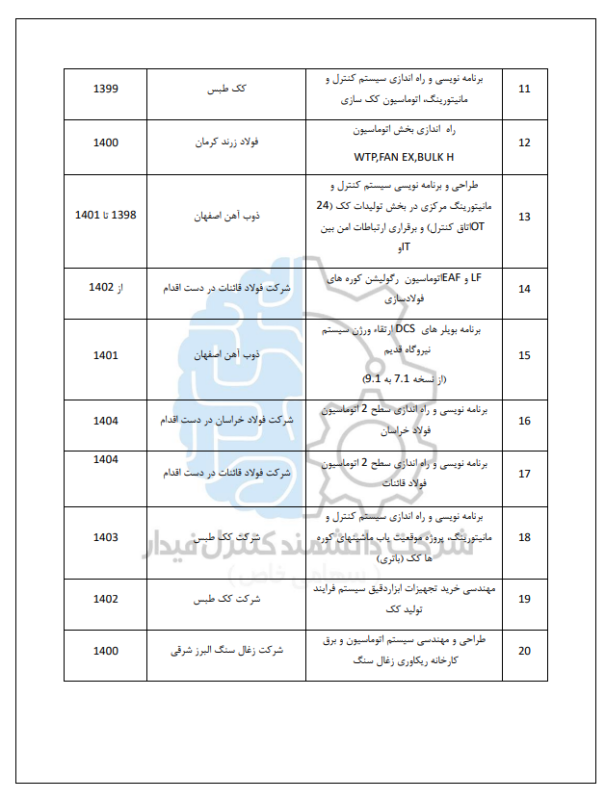 صنایع تولیدی همکاری در برنامه نویسی و راه اندازی خط ورق خودرو _ فولاد چهارمحال بختیاری – سفید دشت 1388-1390
